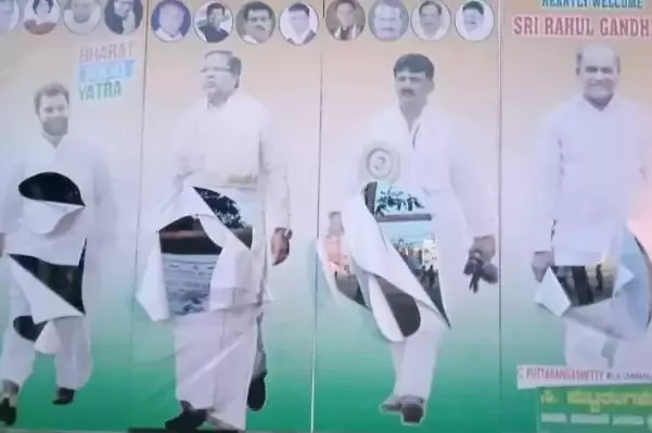 बेंगलूरु/दक्षिण भारत। कांग्रेस की ‘भारत जोड़ो यात्रा’ में नेताओं के स्वागत के लिए लगाए गए कुछ पोस्टर कर्नाटक में उसके प्रवेश करने से एक दिन पहले गुरुवार को चामराजनगर जिले के गुंडलूपेट में फटे हुए पाए गए।
