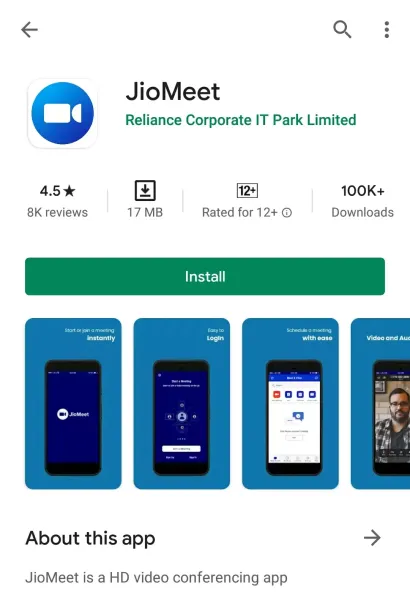 बीटा परीक्षण के बाद जियोमीट वीडियो कॉन्फ्रेंसिंग ऐप एंड्रॉयड, आईओएस, विंडोज, मैकओएस और वेब पर बृहस्पतिवार शाम से उपलब्ध’ है। कंपनी की वेबसाइट के अनुसार, जियोमीट पर एचडी ऑडियो और वीडियो कॉल की गुणवत्ता मिलेगी। इसमें एक साथ 100 लोगों को जोड़ा जा सकता है। इसमें स्क्रीन साझा करने, पहले से बैठक का समय तय करने और अन्य फीचर्स है।