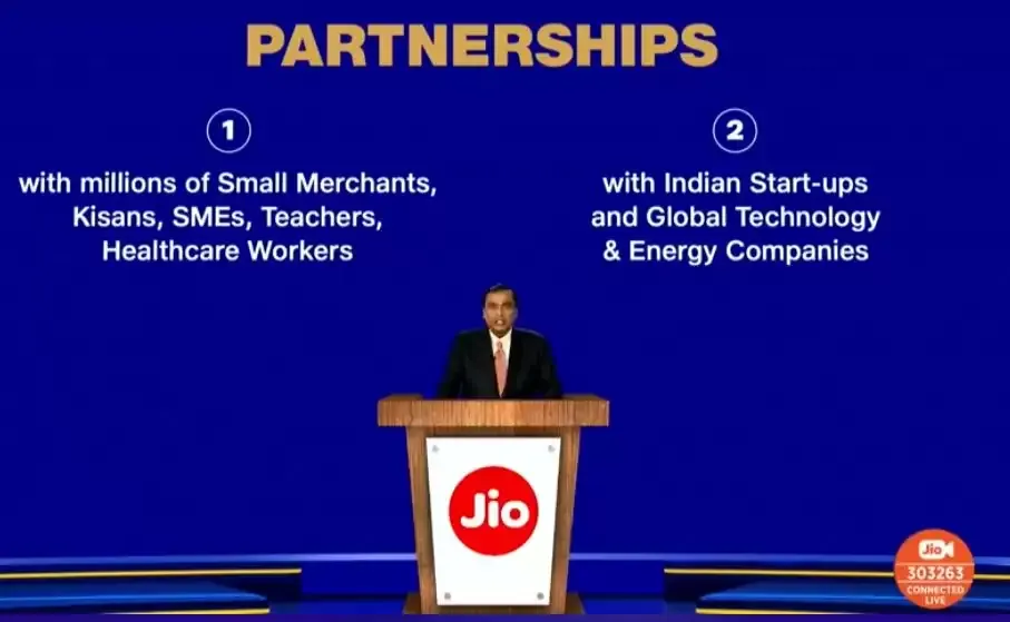 अंबानी ने कहा कि जियो प्लेटफॉर्म्स ने 20से अधिक स्टार्टअप कंपनियों के साथ मिलकर 4जी, 5जी, क्लाउड कंप्यूटिंग, उपकरण और ऑपरेटिंग सिस्टम्स, बिग डाटा, आर्टिफिशियल इंटेलीजेंस, ब्लॉकचेन, स्वभाविक तरीके से भाषा की समझ और कंप्यूटर दृष्टिकोण इत्यादि प्रौद्योगिकी से जुड़ी विश्वस्तरीय क्षमताओं को विकसित किया है।