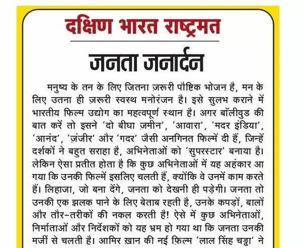 आमिर ख़ान की नई फ़िल्म ‘लाल सिंह चड्ढा’ ने यह स्पष्ट कर दिया कि बॉलीवुड को अब इस भ्रम से बाहर निकल आना चाहिए। जनता हर बार वह नहीं देखेगी, जो आप दिखा देंगे। उसके प्रति दर्शकों में गहरी नाराज़गी है, जिसे समझना होगा। क्या वजह है कि जिन आमिर ख़ान की ‘सरफ़रोश’, ‘लगान’, ‘मंगल पांडेय’ ‘ग़जनी’, ‘थ्री इडियट्स’ और ‘दंगल’ जैसी फ़िल्मों पर जनता ने इतना प्यार लुटाया, उनकी ‘लाल सिंह चड्ढा’ दर्शकों को तरस गई?