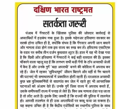 पंजाब में गैंगस्टरों के खिलाफ पुलिस की जोरदार कार्रवाई से अपराधियों में हड़कंप मचा हुआ है। इसके मद्देनजर हरियाणा सरकार का सतर्क होना उचित ही है, क्योंकि संभव है कि गैंगस्टर अपनी जान बचाने और मामला ठंडा होने तक इस राज्य का रुख कर लें। हरियाणा एसटीएफ के रडार पर करीब तीन दर्जन कुख्यात शूटर हैं। हाल में यह भी देखा गया है कि दिल्ली और हरियाणा में गैंगस्टरों ने कई बड़ी वारदात की हैं। इसका चौंकाने वाला पहलू यह है कि लगभग सभी बड़ी गैंगों के टॉप अपराधी जेलों में कैद हैं और उनके गुर्गे ‘बड़ा अपराधी’ बनने की कोशिश में अपराध कर रहे हैं। जेल में रहकर ‘सुविधापूर्ण’ जीवन बिताने और वहीं से गैंग चलाने की घटनाएं भी समाचारपत्रों में प्रकाशित होती रहती हैं।
