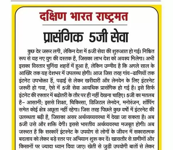 कुछ देर जरूर लगी, लेकिन देश में 5जी सेवा की शुरुआत हो गई। निश्चित रूप से यह नए युग की दस्तक है, जिसका लाभ देश को अवश्य मिलेगा। अभी इसका विस्तार चुनिंदा शहरों में हुआ है, लेकिन उम्मीद है कि अगले साल के आखिर तक यह देशभर में उपलब्ध होगी। आज जिस तरह गांव-ढाणियों तक इंटनेट उपभोक्ता हैं, पढ़ाई से लेकर खरीदारी और लेनदेन के लिए इंटरनेट जरूरी हो गया, ऐसे में 5जी सेवा अत्यधिक प्रासंगिक हो गई है।