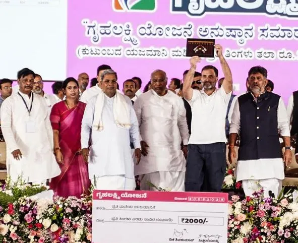 कर्नाटक में एक और प्रमुख चुनावी वादा पूरा करते हुए कांग्रेस सरकार ने बुधवार को ‘गृह लक्ष्मी’ योजना शुरू की जिसके तहत करीब 1.1 करोड़ महिलाओं को 2,000 रुपए की मासिक सहायता दी जाएगी।
