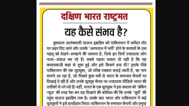 कुख्यात आतंकवादी दाऊद इब्राहिम को पाकिस्तान में कथित तौर पर जहर दिए जाने और उसके 'अस्पताल में भर्ती' होने के कयासों के उस पहलू को देखने-समझने की जरूरत है, जिसे इन दिनों ज्यादातर लोग नज़र-अंदाज़ कर रहे हैं। सबसे पहला सवाल तो यही है कि यह कयासबाजी कहां से शुरू हुई और इसे किसने हवा दी? इसके पीछे पाकिस्तान की एक यूट्यूबर, जो वरिष्ठ पत्रकार बताई जाती हैं, का नाम सामने आ रहा है, जो पिछले कुछ वर्षों से भारत के समाचार चैनलों पर दिखाई दे रही हैं और उनके यूट्यूब चैनल पर ज्यादातर वीडियो भारत की तारीफों से भरे पड़े हैं।