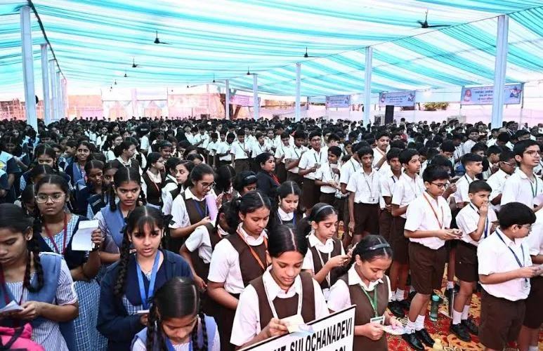 मुंबई/दक्षिण भारत। अणुव्रत विश्व भारती सोसाइटी के तत्वावधान में गुरुवार को अणुव्रत गीत महासंगान का आयोजन आचार्य महाश्रमणजी के सान्निध्य में ठाणे के रेमंड मैदान में हुआ। मंगल महामंत्रोच्चार के साथ कार्यक्रम का शुभारंभ हुआ। लगभग 6,000 बच्चों व लोगों की मौजूदगी में मुंबई के 17 स्कूल व कॉलेजों के विद्यार्थियों ने अणुव्रत गीत का महासंगान किया।