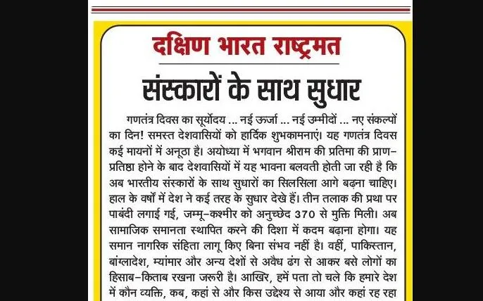 गणतंत्र दिवस का सूर्योदय ... नई ऊर्जा ... नई उम्मीदों ... नए संकल्पों का दिन! समस्त देशवासियों को हार्दिक शुभकामनाएं। यह गणतंत्र दिवस कई मायनों में अनूठा है। अयोध्या में भगवान श्रीराम की प्रतिमा की प्राण-प्रतिष्ठा होने के बाद देशवासियों में यह भावना बलवती होती जा रही है कि अब भारतीय संस्कारों के साथ सुधारों का सिलसिला आगे बढ़ना चाहिए। हाल के वर्षों में देश ने कई तरह के सुधार देखे हैं। तीन तलाक की प्रथा पर पाबंदी लगाई गई, जम्मू-कश्मीर को अनुच्छेद 370 से मुक्ति मिली। अब सामाजिक समानता स्थापित करने की दिशा में कदम बढ़ाना होगा। यह समान नागरिक संहिता लागू किए बिना संभव नहीं है। वहीं, पाकिस्तान, बांग्लादेश, म्यांमार और अन्य देशों से अवैध ढंग से आकर बसे लोगों का हिसाब-किताब रखना जरूरी है। आखिर, हमें पता तो चले कि हमारे देश में कौन व्यक्ति, कब, कहां से और किस उद्देश्य से आया और कहां रह रहा है! उनमें से जो उत्पीड़ित व शोषित हैं, उनकी समस्याओं को समझना होगा, उन्हें राहत देनी होगी। जबकि, यहां घुसपैठ कर संसाधनों पर कब्जे की नीयत से आने वालों के प्रति सख्ती दिखानी होगी। अतीत में हमसे कुछ ग़लतियां हुईं, जिनके कारण हमें विदेशी आक्रांताओं की अधीनता में रहना पड़ा था। उस कालखंड में हमारी संस्कृति और समाज पर आघात से जो घाव हुए, उन पर ‘भारतीयता’ की औषधि लगानी होगी। भारत की आध्यात्मिक व सांस्कृतिक परंपराओं के उत्थान को गति देनी होगी। भारत को विदेशी चश्मे से नहीं, दिव्य दृष्टि से देखना होगा। इसके लिए ज़रूरी है कि हम अपनी शक्ति व सामर्थ्य को पहचानें। शिक्षा, चिकित्सा, न्याय, कृषि, प्रशासन, सुरक्षा, तकनीक ... हर क्षेत्र का ‘भारतीयकरण’ करना होगा। इंटरनेट पर भारतीय भाषाओं का प्रसार होना चाहिए। आयुर्वेद, प्राकृतिक चिकित्सा, योग, वैदिक गणित आदि के प्रचार-प्रसार के लिए और बड़े स्तर पर प्रयास करने होंगे।