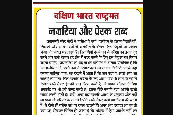 प्रधानमंत्री नरेंद्र मोदी ने 'परीक्षा पे चर्चा' कार्यक्रम के दौरान विद्यार्थियों, शिक्षकों और अभिभावकों से बातचीत के दौरान जिन बिंदुओं का उल्लेख किया, वे अत्यंत महत्त्वपूर्ण हैं। विद्यार्थियों के जीवन से परीक्षा का तनाव दूर करने और उन्हें बेहतर प्रदर्शन में मदद करने के लिए इन बिंदुओं पर विचार करना चाहिए। प्रधानमंत्री का यह कथन वर्तमान में अत्यंत प्रासंगिक है कि 'माता-पिता को अपने बच्चों के रिपोर्ट कार्ड को उनका विजिटिंग कार्ड नहीं बनाना चाहिए।' प्राय: यह देखने में आता है कि जब बच्चों के अच्छे अंक आ जाते हैं तो माता-पिता उनकी तारीफ के लिए आस-पास के लोगों के सामने रिपोर्ट कार्ड लेकर (अंकों का) जिक्र करते हैं। वे अपने सोशल मीडिया अकाउंट पर भी इसे पोस्ट करते हैं। इसके पीछे उनकी मंशा अपनी खुशी साझा करनी होती है। वहीं, अगर बच्चा उनकी आशा के अनुरूप अंक नहीं ला पाया तो परिवार के सामने रिपोर्ट कार्ड लेकर कड़ी आलोचना की जाती है। ये दोनों ही तरीके बच्चे पर दबाव डालते हैं। अगर अंक ज्यादा आ गए तो बच्चा यह सोचकर चिंतित हो जाता है कि भविष्य में ऐसा प्रदर्शन नहीं कर पाया तो माता-पिता अपने परिचितों और मित्रों के साथ क्या साझा करेंगे! कम अंक आने पर बच्चा कड़ी आलोचना और फटकार सुनकर हीनभावना महसूस करने लगता है। मेडिकल और इंजीनियरिंग की प्रवेश परीक्षा की तैयारी के दौरान कुछ बच्चों के मन में आत्महत्या जैसे खौफनाक कदम उठाने के ख़याल आने के पीछे कहीं-न-कहीं (बेहतर प्रदर्शन के लिए) पारिवारिक और सामाजिक दबाव भी एक वजह होता है। पढ़ाई या टेस्ट में पिछड़ने के बाद बच्चे के मन में सबसे पहला सवाल यही पैदा होता है- 'अगर मैं सफल नहीं हो पाया तो परिवार क्या कहेगा, आस-पास के लोग क्या कहेंगे?' ऐसे समय में विशेषज्ञों एवं मनोवैज्ञानिकों से परामर्श लेना चाहिए। जीवन अनमोल है। इसे क्षणिक आवेश और निराशा के भंवर में फंसकर समाप्त कर लेना अक्लमंदी नहीं है।