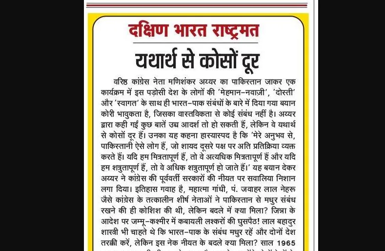 वरिष्ठ कांग्रेस नेता मणिशंकर अय्यर का पाकिस्तान जाकर एक कार्यक्रम में इस पड़ोसी देश के लोगों की ‘मेहमान-नवाज़ी’, ‘दोस्ती’ और ‘स्वागत’ के साथ ही भारत-पाक संबंधों के बारे में दिया गया बयान कोरी भावुकता है, जिसका वास्तविकता से कोई संबंध नहीं है। अय्यर द्वारा कही गईं कुछ बातें उच्च आदर्श तो हो सकती हैं, लेकिन वे यथार्थ से कोसों दूर हैं। उनका यह कहना हास्यास्पद है कि ‘मेरे अनुभव से, पाकिस्तानी ऐसे लोग हैं, जो शायद दूसरे पक्ष पर अति प्रतिक्रिया व्यक्त करते हैं। यदि हम मित्रतापूर्ण हैं, तो वे अत्यधिक मित्रतापूर्ण हैं और यदि हम शत्रुतापूर्ण हैं, तो वे अधिक शत्रुतापूर्ण हो जाते हैं।’ यह बयान देकर अय्यर ने कांग्रेस की पूर्ववर्ती सरकारों की नीयत पर सवालिया निशान लगा दिया। इतिहास गवाह है, महात्मा गांधी, पं. जवाहर लाल नेहरू जैसे कांग्रेस के तत्कालीन शीर्ष नेताओं ने पाकिस्तान से मधुर संबंध रखने की ही कोशिश की थी, लेकिन बदले में क्या मिला? जिन्ना के आदेश पर जम्मू-कश्मीर में कबायली लश्करों की घुसपैठ! लाल बहादुर शास्त्री भी चाहते थे कि भारत-पाक के संबंध मधुर रहें और दोनों देश तरक्की करें, लेकिन इस नेक नीयत के बदले क्या मिला? साल 1965 का युद्ध! अटलजी भी बस लेकर लाहौर गए थे। उन्होंने दोनों देशों के संबंधों को सुधारने की पूरी कोशिश की थी, लेकिन उसके बाद क्या हुआ? कारगिल युद्ध! भारत की हर सरकार और उसके हर प्रधानमंत्री की मंशा यही रही कि भारत-पाक के रिश्तों में तनाव कम हो जाए, दोनों तरफ के लोगों की ज़िंदगी में आसानी आए, लेकिन कभी हमारे विमान का अपहरण हुआ, कभी संसद भवन पर आतंकियों ने हमला बोला, कभी 26/11 हुआ, तो कभी पठानकोट, उरी और पुलवामा में दहशत का खूनी खेल खेला गया। इन सबके पीछे कौन था? वही पाकिस्तान, जिसकी मेहमान-नवाज़ी का अय्यर बखान कर रहे हैं।