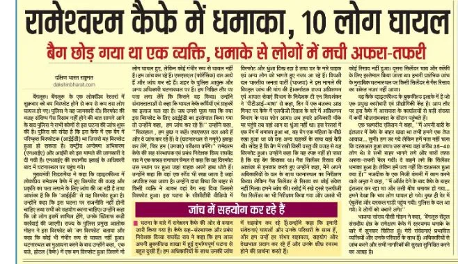 बेंगलूरु/दक्षिण भारत। बेंगलूरु के व्हाइटफील्ड स्थित मशहूर रामेश्वरम कैफे में शुक्रवार को धमाका होने से लोगों में अफरा-तफरी मच गई। पहले संदेह जताया जा रहा था कि यह सिलेंडर धमाका था, लेकिन बाद में कुछ और ही बात निकलकर सामने आई।