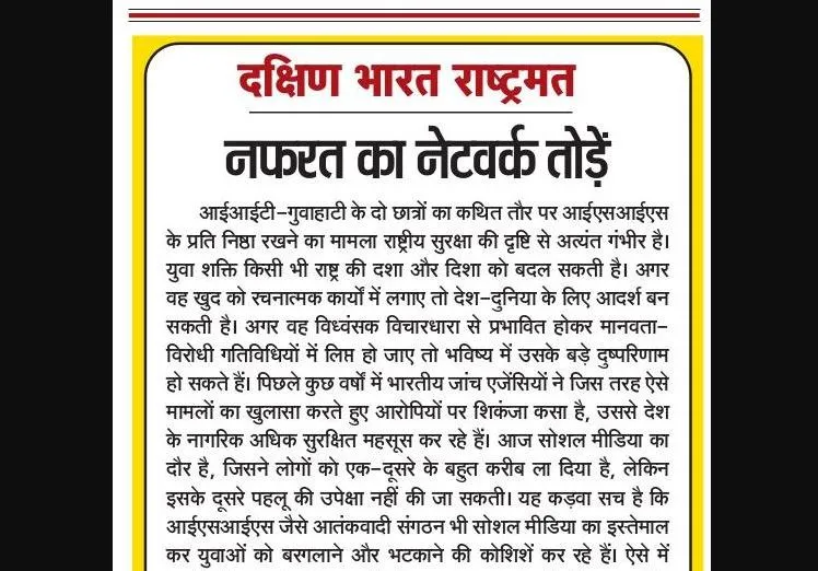 आईआईटी का उक्त छात्र बीटेक के चौथे वर्ष में था। निश्चित रूप से उसने इस कक्षा तक पहुंचने के लिए कड़ी मेहनत की होगी। यह माना जा सकता है कि छात्र को अपने भले-बुरे की जानकारी थी। उसे यह भी पता था कि आईएसआईएस जैसे संगठन क्या काम करते हैं! उच्च शिक्षित होने के बावजूद उसने ऐसा कदम क्यों उठाया? कोई भी व्यक्ति ऐसे संगठनों के प्रभाव में रातोंरात नहीं आता। निश्चित रूप से उसके दिलो-दिमाग में किसी अन्य व्यक्ति ने नफरत का जहर भरा होगा। सोशल मीडिया पर ऐसे कई कथित उपदेशक सक्रिय हैं, जो युवाओं को गुमराह कर रहे हैं। जब तक इन पर सख्ती नहीं की जाएगी, आतंकवादी संगठनों से सहानुभूति के मामले सामने आते रहेंगे। इन दिनों यूरोप भी इसी समस्या से त्रस्त है। वहां अति-उदारवादी सरकारें अपने नागरिकों और सामाजिक सद्भाव की सुरक्षा को लेकर चिंतित हैं। उन्होंने सख्त कदम उठाने शुरू कर दिए हैं। ब्रिटेन ने पाकिस्तान, अफगानिस्तान, इंडोनेशिया जैसे देशों से चरमपंथी प्रचारकों के लिए अपने दरवाजे बंद करने का फैसला किया है। ब्रिटिश प्रधानमंत्री ऋषि सुनक एक भाषण में चेतावनी दे चुके हैं कि इस देश के लोकतांत्रिक और बहु-आस्था मूल्य चरमपंथियों के खतरे में हैं। फ्रांस में ट्यूनीशियाई मूल के एक चरमपंथी उपदेशक ने इस देश के राष्ट्रीय ध्वज को शैतानी झंडा बताया था, जिसके बाद सरकार ने सख्त रुख अपनाकर उसे निष्कासित करते हुए 'स्वदेश' रवाना कर दिया था। सरकारों को चाहिए कि वे इंटरनेट पर भी ऐसे तत्त्वों के खिलाफ अभियान छेड़ें। अगर जरूरत पड़े तो कठोर नियम बनाएं, सर्च इंजन व सोशल मीडिया कंपनियों के प्रतिनिधियों से बातचीत करें। युवाओं को आतंकवाद की ओर धकेलने वाले प्रचारकों, उपदेशकों और संगठनों के लिए इंटरनेट पर कोई जगह नहीं होनी चाहिए। जांच एजेंसियां खूब सतर्कता बरतते हुए संदिग्ध सोशल मीडिया प्रोफाइलों, पेजों और समूहों पर नजर रखें। समय-समय पर स्कूलों और कॉलेजों में जागरूकता के लिए कार्यक्रम करवाएं। युवाओं को चरमपंथी विचारधारा के खतरे बताते हुए इस बात का विश्वास दिलाया जाए कि अगर आपको कोई गुमराह करने की कोशिश करे तो पुलिस या संबंधित एजेंसियों को बेखौफ होकर सूचना दें, आपकी मदद की जाएगी। सजगता और आपसी विश्वास से ही नफरत का नेटवर्क तोड़ा जा सकता है।