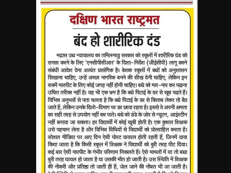 मद्रास उच्च न्यायालय का तमिलनाडु सरकार को स्कूलों में शारीरिक दंड को समाप्त करने के लिए ‘एनसीपीसीआर’ के दिशा-निर्देश (जीईसीपी) लागू करने संबंधी आदेश देना अत्यंत प्रासंगिक है। बेशक स्कूलों में बच्चों को अनुशासन सिखाना चाहिए, उन्हें अच्छा नागरिक बनने की सीख देनी चाहिए, लेकिन इन सबमें मारपीट के लिए कोई जगह नहीं होनी चाहिए। बच्चे को मार-मार कर पढ़ाना उचित तरीका नहीं है। यह भी एक भ्रम है कि बच्चे पिटाई के डर से खूब पढ़ते हैं। विभिन्न अनुभवों से पता चलता है कि बच्चे पिटाई के डर से किताब लेकर तो बैठ जाते हैं, लेकिन उनके दिलो-दिमाग पर डर छाया रहता है। इससे वे अपनी क्षमता का सही तरह से उपयोग नहीं कर पाते। बच्चे को डंडे के जोर से न्यूटन, आइंस्टीन नहीं बनाया जा सकता। हर विद्यार्थी में कोई खूबी होती है। एक कुशल शिक्षक उसे पहचान लेता है और विभिन्न विधियों से विद्यार्थी को प्रोत्साहित करता है। सोशल मीडिया पर आए दिन ऐसी पोस्ट वायरल होती रहती हैं, जिनमें दावा किया जाता है कि किसी स्कूल में शिक्षक ने विद्यार्थी को बुरी तरह पीट दिया। कई बार ऐसी मारपीट के गंभीर परिणाम निकलते हैं। ऐसे मामलों में या तो बच्चा बुरी तरह घायल हो जाता है या उसकी मौत हो जाती है। उस स्थिति में शिक्षक की नौकरी और प्रतिष्ठा तो जाती ही हैं, जेल जाने की नौबत भी आ जाती है। ऐसी स्थिति से बचना चाहिए। यह भी बहुत बड़ी ग़लत-फ़हमी है कि जो शिक्षक सबसे ज्यादा पिटाई करते हैं, उनके विद्यार्थी पढ़ाई-लिखाई में ज्यादा रुचि लेते हैं और उनका परिणाम बेहतर आता है। राजस्थान में झुंझनूं जिले के एक सरकारी स्कूल में विज्ञान के शिक्षक अपने विषय के बड़े विद्वान थे। हालांकि वे अपनी विद्वता से ज्यादा बच्चों की पिटाई के लिए जाने जाते थे। उनके कक्षा में कदम रखते ही दहशत छा जाती थी। कई छात्र तो पहले ही गायब हो जाते थे। जिस दिन गृहकार्य की जांच या प्रश्न पूछने की बारी आती, अनुपस्थित छात्रों की संख्या और बढ़ जाती। दूसरे दिन वे शिक्षक महोदय ऐसे छात्रों को पीट-पीटकर अधमरा कर देते थे।