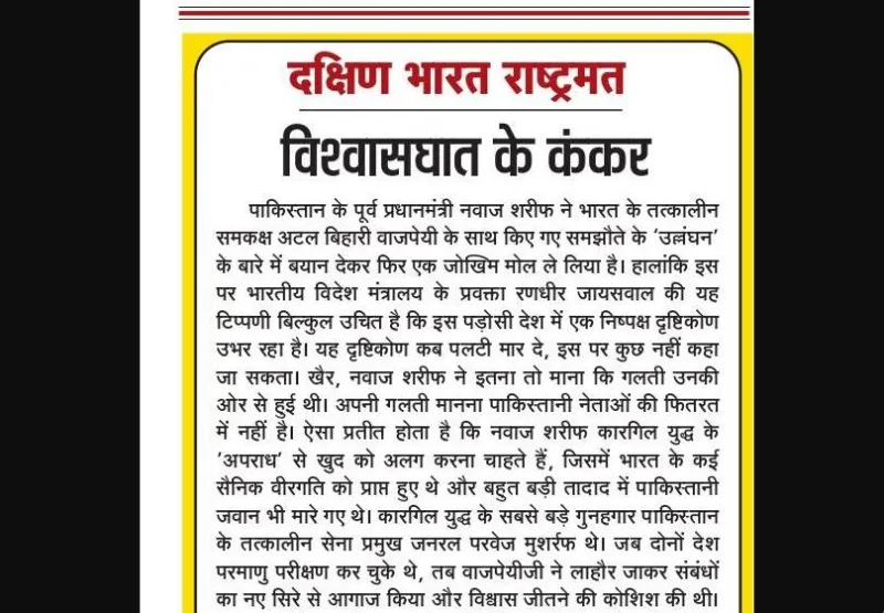पाकिस्तान के पूर्व प्रधानमंत्री नवाज शरीफ ने भारत के तत्कालीन समकक्ष अटल बिहारी वाजपेयी के साथ किए गए समझौते के ‘उल्लंघन’ के बारे में बयान देकर फिर एक जोखिम मोल ले लिया है। हालांकि इस पर भारतीय विदेश मंत्रालय के प्रवक्ता रणधीर जायसवाल की यह टिप्पणी बिल्कुल उचित है कि इस पड़ोसी देश में एक निष्पक्ष दृष्टिकोण उभर रहा है। यह दृष्टिकोण कब पलटी मार दे, इस पर कुछ नहीं कहा जा सकता। खैर, नवाज शरीफ ने इतना तो माना कि गलती उनकी ओर से हुई थी। अपनी गलती मानना पाकिस्तानी नेताओं की फितरत में नहीं है। ऐसा प्रतीत होता है कि नवाज शरीफ कारगिल युद्ध के 'अपराध' से खुद को अलग करना चाहते हैं, जिसमें भारत के कई सैनिक वीरगति को प्राप्त हुए थे और बहुत बड़ी तादाद में पाकिस्तानी जवान भी मारे गए थे। कारगिल युद्ध के सबसे बड़े गुनहगार पाकिस्तान के तत्कालीन सेना प्रमुख जनरल परवेज मुशर्रफ थे। जब दोनों देश परमाणु परीक्षण कर चुके थे, तब वाजपेयीजी ने लाहौर जाकर संबंधों का नए सिरे से आगाज किया और विश्वास जीतने की कोशिश की थी। उस समझौते पर किए गए हस्ताक्षरों की स्याही भी नहीं सूखी थी कि मुशर्रफ ने कारगिल युद्ध छेड़ दिया था। यह भी एक अजीब बात है कि मुशर्रफ जब तक पाक फौज में उच्च पदों तक नहीं पहुंचे थे, उन्हें अच्छा रणनीतिकार माना जाता था। वे सैन्य अध्ययन के दिनों में रणनीति संबंधी विषयों में अच्छा प्रदर्शन करते थे। यह अलग बात है कि जब उन्होंने धरातल पर रणनीति बनाई, वह बुरी तरह विफल हुई। मुशर्रफ 'कागजी रणनीतिकार' थे, जिन्होंने दुस्साहसी स्वभाव के कारण कारगिल युद्ध में मुंह की खाई और अपने देश को तबाही की ओर लेकर गए।