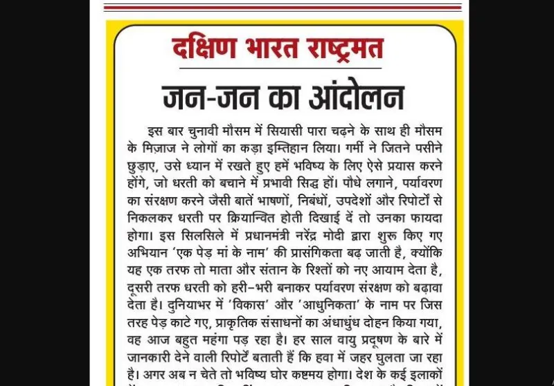 इस बार चुनावी मौसम में सियासी पारा चढ़ने के साथ ही मौसम के मिज़ाज ने लोगों का कड़ा इम्तिहान लिया। गर्मी ने जितने पसीने छुड़ाए, उसे ध्यान में रखते हुए हमें भविष्य के लिए ऐसे प्रयास करने होंगे, जो धरती को बचाने में प्रभावी सिद्ध हों। पौधे लगाने, पर्यावरण का संरक्षण करने जैसी बातें भाषणों, निबंधों, उपदेशों और रिपोर्टों से निकलकर धरती पर क्रियान्वित होती दिखाई दें तो उनका फायदा होगा। इस सिलसिले में प्रधानमंत्री नरेंद्र मोदी द्वारा शुरू किए गए अभियान ‘एक पेड़ मां के नाम’ की प्रासंगिकता बढ़ जाती है, क्योंकि यह एक तरफ तो माता और संतान के रिश्तों को नए आयाम देता है, दूसरी तरफ धरती को हरी-भरी बनाकर पर्यावरण संरक्षण को बढ़ावा देता है। दुनियाभर में 'विकास' और 'आधुनिकता' के नाम पर जिस तरह पेड़ काटे गए, प्राकृतिक संसाधनों का अंधाधुंध दोहन किया गया, वह आज बहुत महंगा पड़ रहा है। हर साल वायु प्रदूषण के बारे में जानकारी देने वाली रिपोर्टें बताती हैं कि हवा में जहर घुलता जा रहा है। अगर अब न चेते तो भविष्य घोर कष्टमय होगा। देश के कई इलाकों में भूजल स्तर अत्यधिक चिंताजनक स्तर तक गिर चुका है। किसानों ने मजबूरन ऐसे कुओं को बंद कर रोजगार के अन्य रास्ते खोजने शुरू कर दिए हैं। कहीं अतिवृष्टि से जनजीवन प्रभावित हो रहा है तो कहीं अनावृष्टि से लोग लाचार हैं। वैज्ञानिक कह रहे हैं कि जलवायु परिवर्तन के असर की चपेट में सब आएंगे। कई देशों के समुद्र तटीय इलाके जलमग्न हो सकते हैं। अनाज, सब्जियों, फलों और फूलों की उपज घट सकती है, उनकी गुणवत्ता कमजोर हो सकती है। इन खतरों को टालना है तो हमें अपनी जीवनशैली बदलनी होगी। ऐसी प्रथाओं को अपनाना होगा, जो कार्बन उत्सर्जन में कटौती कर सकें। ज्यादा से ज्यादा पौधे लगाने होंगे और उनकी देखभाल करनी होगी।