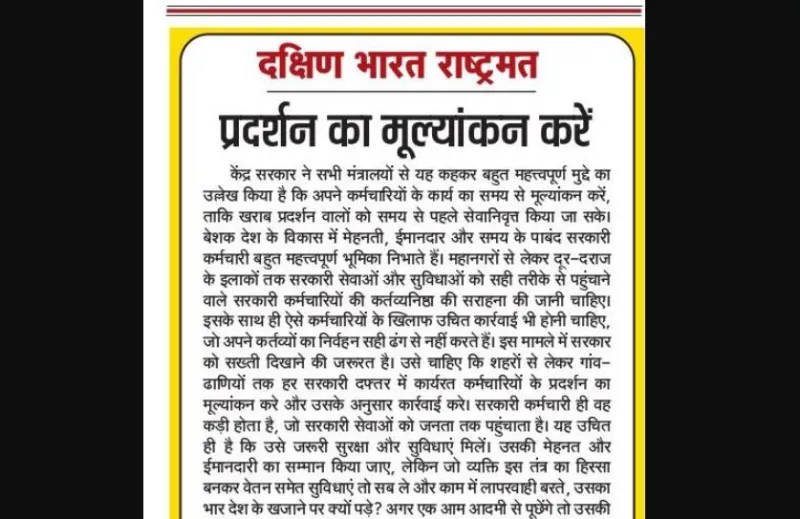 केंद्र सरकार ने सभी मंत्रालयों से यह कहकर बहुत महत्त्वपूर्ण मुद्दे का उल्लेख किया है कि अपने कर्मचारियों के कार्य का समय से मूल्यांकन करें, ताकि खराब प्रदर्शन वालों को समय से पहले सेवानिवृत्त किया जा सके। बेशक देश के विकास में मेहनती, ईमानदार और समय के पाबंद सरकारी कर्मचारी बहुत महत्त्वपूर्ण भूमिका निभाते हैं। महानगरों से लेकर दूर-दराज के इलाकों तक सरकारी सेवाओं और सुविधाओं को सही तरीके से पहुंचाने वाले सरकारी कर्मचारियों की कर्तव्यनिष्ठा की सराहना की जानी चाहिए। इसके साथ ही ऐसे कर्मचारियों के खिलाफ उचित कार्रवाई भी होनी चाहिए, जो अपने कर्तव्यों का निर्वहन सही ढंग से नहीं करते हैं। इस मामले में सरकार को सख्ती दिखाने की जरूरत है। उसे चाहिए कि शहरों से लेकर गांव-ढाणियों तक हर सरकारी दफ्तर में कार्यरत कर्मचारियों के प्रदर्शन का मूल्यांकन करे और उसके अनुसार कार्रवाई करे। सरकारी कर्मचारी ही वह कड़ी होता है, जो सरकारी सेवाओं को जनता तक पहुंचाता है। यह उचित ही है कि उसे जरूरी सुरक्षा और सुविधाएं मिलें। उसकी मेहनत और ईमानदारी का सम्मान किया जाए, लेकिन जो व्यक्ति इस तंत्र का हिस्सा बनकर वेतन समेत सुविधाएं तो सब ले और काम में लापरवाही बरते, उसका भार देश के खजाने पर क्यों पड़े? अगर एक आम आदमी से पूछेंगे तो उसकी कई शिकायतें हैं, जो अपनी जगह वाजिब भी हैं, जैसे- कुछ सरकारी कर्मचारी समय पर दफ्तर नहीं आते, काम को टालते रहते हैं, अगर उनसे विनम्रतापूर्वक कुछ पूछते हैं तो सीधा जवाब नहीं देते, छोटे से काम के लिए भी अनावश्यक चक्कर लगवाते रहते हैं, लंच टाइम के बाद बहुत देर से लौटते हैं ...।