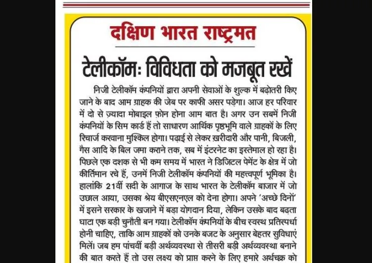 निजी टेलीकॉम कंपनियों द्वारा अपनी सेवाओं के शुल्क में बढ़ोतरी किए जाने के बाद आम ग्राहक की जेब पर काफी असर पड़ेगा। आज हर परिवार में दो से ज़्यादा मोबाइल फ़ोन होना आम बात है। अगर उन सबमें निजी कंपनियों के सिम कार्ड हैं तो साधारण आर्थिक पृष्ठभूमि वाले ग्राहकों के लिए रिचार्ज करवाना मुश्किल होगा। पढ़ाई से लेकर ख़रीदारी और पानी, बिजली, गैस आदि के बिल जमा कराने तक, सब में इंटरनेट का इस्तेमाल हो रहा है। पिछले एक दशक से भी कम समय में भारत ने डिजिटल पेमेंट के क्षेत्र में जो कीर्तिमान रचे हैं, उनमें निजी टेलीकॉम कंपनियों की महत्त्वपूर्ण भूमिका है। हालांकि 21वीं सदी के आगाज के साथ भारत के टेलीकॉम बाजार में जो उछाल आया, उसका श्रेय बीएसएनएल को देना होगा। अपने 'अच्छे दिनों' में इसने सरकार के खजाने में बड़ा योगदान दिया, लेकिन उसके बाद बढ़ता घाटा एक बड़ी चुनौती बन गया। टेलीकॉम कंपनियों के बीच स्वस्थ प्रतिस्पर्धा होनी चाहिए, ताकि आम ग्राहकों को उनके बजट के अनुसार बेहतर सुविधाएं मिलें। जब हम पांचवीं बड़ी अर्थव्यवस्था से तीसरी बड़ी अर्थव्यवस्था बनाने की बात करते हैं तो उस लक्ष्य को प्राप्त करने के लिए हमारे अर्थचक्र को टेलीकॉम कंपनियां भी ऊर्जा देंगी। बाजार में विविधता हो, ग्राहकों के पास अधिक विकल्प हों, उनके हितों की प्रभावी ढंग से रक्षा हो, इसके लिए बहुत जरूरी है कि निजी टेलीकॉम कंपनियों के साथ ही बीएसएनएल का भी विस्तार हो। आज एक आम ग्राहक टेलीकॉम कंपनी से क्या चाहता है? यही कि सेवाओं का शुल्क उसके बजट में हो, इंटरनेट की रफ्तार अच्छी हो, जब कभी कोई समस्या आए तो उसका समय पर उचित समाधान हो।