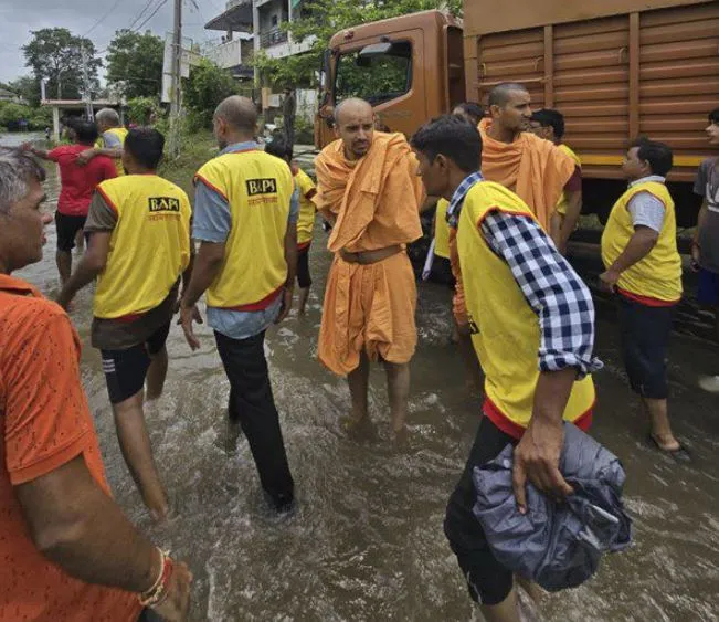 दोनों शहरों में महंत स्वामी महाराज के मार्गदर्शन में बीएपीएस स्वामीनारायण संस्था के स्वामियों और स्वयंसेवकों ने स्थानीय सरकारी अधिकारियों के अनुरोध पर बाढ़ राहत प्रयासों में योगदान दिया।