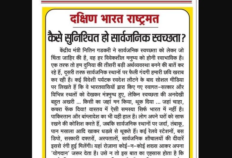 केंद्रीय मंत्री नितिन गडकरी ने सार्वजनिक स्वच्छता को लेकर जो चिंता जाहिर की है, वह हर विवेकशील मनुष्य को होनी स्वाभाविक है। एक तरफ तो हम दुनिया की तीसरी बड़ी अर्थव्यवस्था बनने की बातें कर रहे हैं, दूसरी तरफ सार्वजनिक स्थानों पर फैली गंदगी हमारी छवि खराब कर रही है।