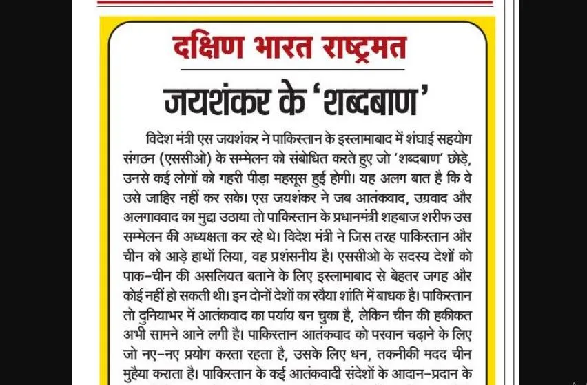 विदेश मंत्री एस जयशंकर ने पाकिस्तान के इस्लामाबाद में शंघाई सहयोग संगठन (एससीओ) के सम्मेलन को संबोधित करते हुए जो 'शब्दबाण' छोड़े, उनसे कई लोगों को गहरी पीड़ा महसूस हुई होगी। यह अलग बात है कि वे उसे जाहिर नहीं कर सके। एस जयशंकर ने जब आतंकवाद, उग्रवाद और अलगाववाद का मुद्दा उठाया तो पाकिस्तान के प्रधानमंत्री शहबाज शरीफ उस सम्मेलन की अध्यक्षता कर रहे थे। विदेश मंत्री ने जिस तरह पाकिस्तान और चीन को आड़े हाथों लिया, वह प्रशंसनीय है।