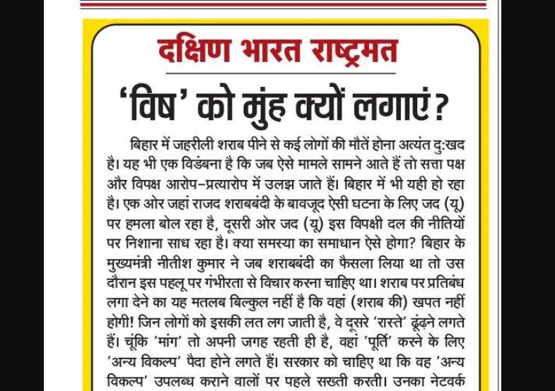 बिहार के मुख्यमंत्री नीतीश कुमार ने जब शराबबंदी का फैसला लिया था तो उस दौरान इस पहलू पर गंभीरता से विचार करना चाहिए था। शराब पर प्रतिबंध लगा देने का यह मतलब बिल्कुल नहीं है कि वहां (शराब की) खपत नहीं होगी! जिन लोगों को इसकी लत लग जाती है, वे दूसरे 'रास्ते' ढूंढ़ने लगते हैं। चूंकि 'मांग' तो अपनी जगह रहती ही है, वहां 'पूर्ति' करने के लिए 'अन्य विकल्प' पैदा होने लगते हैं। सरकार को चाहिए था कि वह 'अन्य विकल्प' उपलब्ध कराने वालों पर पहले सख्ती करती। उनका नेटवर्क ध्वस्त करती। उसके बाद चरणबद्ध तरीके से शराबबंदी लागू करती।