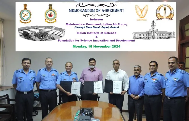 बेंगलूरु/दक्षिण भारत। भारतीय वायुसेना की मुख्यालय मेंटेनेंस कमान ने बेस रिपेयर डिपो, पंचवटी, पालम के माध्यम से आईआईएससी, बेंगलूरु और फाउंडेशन फॉर साइंस इनोवेशन एंड डेवलपमेंट (एफएसआईडी), बेंगलूरु के साथ समझौता ज्ञापन (एमओए) पर हस्ताक्षर किए हैं।