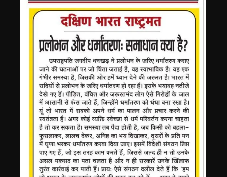 उपराष्ट्रपति जगदीप धनखड़ ने प्रलोभन के जरिए धर्मांतरण कराए जाने की घटनाओं पर जो चिंता जताई है, वह स्वाभाविक है। यह एक गंभीर समस्या है, जिसकी ओर हमें ध्यान देने की जरूरत है। भारत में सदियों से प्रलोभन के जरिए धर्मांतरण हो रहा है। इसके भयावह नतीजे देखे गए हैं। पीड़ित, वंचित और जरूरतमंद लोग ऐसे गिरोहों के जाल में आसानी से फंस जाते हैं, जिन्होंने धर्मांतरण को धंधा बना रखा है। यूं तो भारत में सबको अपने धर्म का पालन और प्रचार करने की स्वतंत्रता है। अगर कोई व्यक्ति स्वेच्छा से धर्म परिवर्तन करना चाहता है तो कर सकता है। समस्या तब पैदा होती है, जब किसी को बहला-फुसलाकर, लालच देकर, अनिष्ट का भय दिखाकर, दूसरों के प्रति मन में घृणा भरकर धर्मांतरण करवा दिया जाए। इसमें विदेशी संगठन लिप्त पाए गए हैं, जो इस तरह काम करते हैं, जिससे जल्द ही न तो उनके असल मकसद का पता चलता है और न ही सरकारें उनके खिलाफ तुरंत कार्रवाई कर पाती हैं। प्राय: ऐसे संगठन दलील देते हैं कि 'हम तो भारत के जरूरतमंद लोगों की मदद कर रहे हैं ... अगर वे हमारे कार्यों से प्रभावित होकर धर्मांतरण कर लेते हैं तो उन्हें इसकी स्वतंत्रता होनी चाहिए!' दो दशक पहले कुछ विदेशी रेडियो स्टेशन बहुत योजनाबद्ध ढंग से धर्मांतरण की जमीन तैयार कर रहे थे। यूरोप के एक देश से चलने वाला रेडियो स्टेशन, जो बाद में सोशल मीडिया पर स्थानांतरित हो गया, मुख्यत: पंजाब को केंद्र में रखकर खूब कार्यक्रम चलाता था। वह पंजाबी गानों के साथ हिंदी में 'प्रचार' करता था। शाम को जब सब लोग घर में होते हैं, तब उसकी सभा शुरू होती और देर रात तक चलती। अगले दिन सुबह भी उस पर गीत आते रहते थे। उसमें दावा किया जाता कि हमारी शरण में आने से फलां व्यक्ति बीमारी से ठीक हो गया, किसी को कनाडा का वीजा मिल गया, किसी को जीवनसाथी मिल गया!