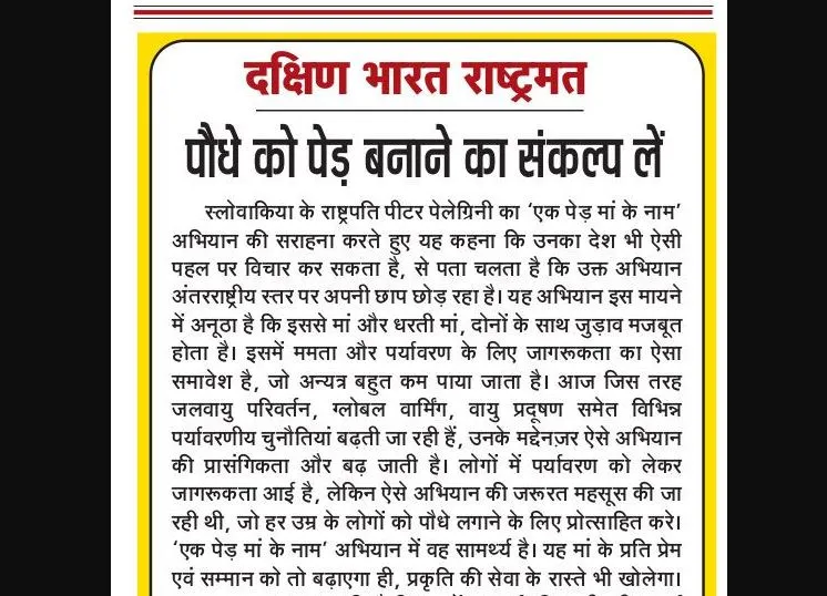 स्लोवाकिया के राष्ट्रपति पीटर पेलेग्रिनी का ‘एक पेड़ मां के नाम’ अभियान की सराहना करते हुए यह कहना कि उनका देश भी ऐसी पहल पर विचार कर सकता है, से पता चलता है कि उक्त अभियान अंतरराष्ट्रीय स्तर पर अपनी छाप छोड़ रहा है। यह अभियान इस मायने में अनूठा है कि इससे मां और धरती मां, दोनों के साथ जुड़ाव मजबूत होता है। इसमें ममता और पर्यावरण के लिए जागरूकता का ऐसा समावेश है, जो अन्यत्र बहुत कम पाया जाता है। आज जिस तरह जलवायु परिवर्तन, ग्लोबल वार्मिंग, वायु प्रदूषण समेत विभिन्न पर्यावरणीय चुनौतियां बढ़ती जा रही हैं, उनके मद्देनज़र ऐसे अभियान की प्रासंगिकता और बढ़ जाती है। लोगों में पर्यावरण को लेकर जागरूकता आई है, लेकिन ऐसे अभियान की जरूरत महसूस की जा रही थी, जो हर उम्र के लोगों को पौधे लगाने के लिए प्रोत्साहित करे। ‘एक पेड़ मां के नाम’ अभियान में वह सामर्थ्य है। यह मां के प्रति प्रेम एवं सम्मान को तो बढ़ाएगा ही, प्रकृति की सेवा के रास्ते भी खोलेगा। अब जरूरत इस बात की है कि इसमें हर वर्ग की भागीदारी बढ़ाई जाए। विद्यार्थियों, युवाओं से लेकर बुजुर्गों तक, हर उम्र के लोगों को इसमें शामिल किया जाए। प्राय: पौधे लगाने से संबंधित अभियानों में दो दिक्कतें आती हैं- पहली, लोग यह तो जानते हैं कि पौधे लगाना अच्छी बात है, लेकिन ख़ुद नहीं लगाना चाहते। वे दूसरों से उम्मीद करते हैं कि खूब पौधे लगाएं। हां, अगर सोशल मीडिया पर ऐसी फोटो आ जाए तो वे उसे 'लाइक' कर आगे बढ़ जाते हैं। दूसरी, कई लोग पौधे तो लगा देते हैं, अपनी फोटो सोशल मीडिया पर पोस्ट कर देते हैं, जहां उन्हें सराहना मिलती है, लेकिन इसके बाद वे उस पौधे की सुध नहीं लेते। अगर वह पौधा विभिन्न चुनौतियों से जूझकर पेड़ बन जाए तो उसे लगाने वाले की 'वाह-वाह' होती है। अगर सूखकर दम तोड़ दे तो कोई पूछने वाला नहीं होता।