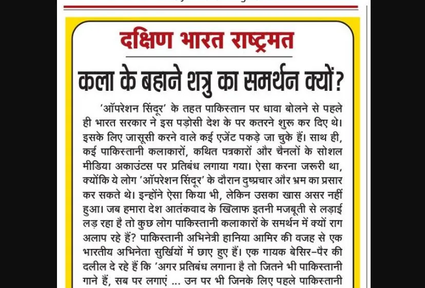 'ऑपरेशन सिंदूर' के तहत पाकिस्तान पर धावा बोलने से पहले ही भारत सरकार ने इस पड़ोसी देश के पर कतरने शुरू कर दिए थे। इसके लिए जासूसी करने वाले कई एजेंट पकड़े जा चुके हैं। साथ ही, कई पाकिस्तानी कलाकारों, कथित पत्रकारों और चैनलों के सोशल मीडिया अकाउंट्स पर प्रतिबंध लगाया गया। ऐसा करना जरूरी था, क्योंकि ये लोग 'ऑपरेशन सिंदूर' के दौरान दुष्प्रचार और भ्रम का प्रसार कर सकते थे। इन्होंने ऐसा किया भी, लेकिन उसका खास असर नहीं हुआ। जब हमारा देश आतंकवाद के खिलाफ इतनी मजबूती से लड़ाई लड़ रहा है तो कुछ लोग पाकिस्तानी कलाकारों के समर्थन में क्यों राग अलाप रहे हैं? पाकिस्तानी अभिनेत्री हानिया आमिर की वजह से एक भारतीय अभिनेता सुर्खियों में छाए हुए हैं। एक गायक बेसिर-पैर की दलील दे रहे हैं कि 'अगर प्रतिबंध लगाना है तो जितने भी पाकिस्तानी गाने हैं, सब पर लगाएं ... उन पर भी जिनके लिए पहले पाकिस्तानी गायकों ने आवाज दी थी!' इसका मतलब यह हुआ कि भारतीय सिनेमा उद्योग का पूरा रिकॉर्ड उठाकर उसका अध्ययन करें, उसमें पाकिस्तानियों की पहचान करें, उसके बाद प्रतिबंध लगाएं। दूसरे शब्दों में कहें तो वर्तमान पर ध्यान देने के बजाय अतीत के गलियारों में ही घूमते रहें, जब किसी निष्कर्ष पर पहुंच जाएं, तब कोई कार्रवाई करें ... इस दौरान पाकिस्तानियों को धड़ल्ले से काम करने दें! कुछ कथित कलाकारों का यह रवैया समझ से परे है। क्या वजह है कि आपको पाकिस्तानी कलाकार ही चाहिएं? अगर पड़ोसी देशों के कलाकारों को काम देना है तो भूटान, नेपाल, श्रीलंका के कलाकारों को दें।