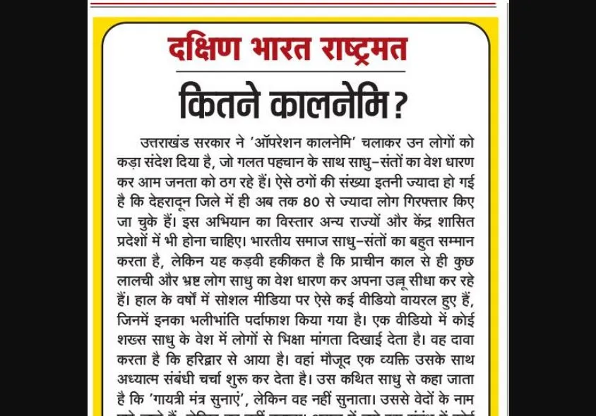 उत्तराखंड सरकार ने 'ऑपरेशन कालनेमि' चलाकर उन लोगों को कड़ा संदेश दिया है, जो गलत पहचान के साथ साधु-संतों का वेश धारण कर आम जनता को ठग रहे हैं। ऐसे ठगों की संख्या इतनी ज्यादा हो गई है कि देहरादून जिले में ही अब तक 80 से ज्यादा लोग गिरफ्तार किए जा चुके हैं। इस अभियान का विस्तार अन्य राज्यों और केंद्र शासित प्रदेशों में भी होना चाहिए। भारतीय समाज साधु-संतों का बहुत सम्मान करता है, लेकिन यह कड़वी हकीकत है कि प्राचीन काल से ही कुछ लालची और भ्रष्ट लोग साधु का वेश धारण कर अपना उल्लू सीधा कर रहे हैं। हाल के वर्षों में सोशल मीडिया पर ऐसे कई वीडियो वायरल हुए हैं, जिनमें इनका भलीभांति पर्दाफाश किया गया है। एक वीडियो में कोई शख्स साधु के वेश में लोगों से भिक्षा मांगता दिखाई देता है। वह दावा करता है कि हरिद्वार से आया है। वहां मौजूद एक व्यक्ति उसके साथ अध्यात्म संबंधी चर्चा शुरू कर देता है। उस कथित साधु से कहा जाता है कि 'गायत्री मंत्र सुनाएं', लेकिन वह नहीं सुनाता। उससे वेदों के नाम पूछे जाते हैं, लेकिन वह नहीं बताता। असल में उसे इस संबंध में कोई ज्ञान ही नहीं था। वह व्यक्ति उसका असली नाम पूछता है तो टालमटोल करने लगता है। पता चलता है कि साधु बनकर घूम रहा वह शख्स सिर्फ रुपए कमाने के लिए ऐसा कर रहा था। वह हिंदू भी नहीं था। इसी तरह एक और वीडियो में कोई कथित साधु गांव-गांव घूमकर चंदा इकट्ठा कर रहा था। उसका दावा था कि इस राशि से हनुमानजी का भव्य मंदिर बनेगा। उससे एक व्यक्ति ने हनुमानजी की माता का नाम पूछा तो वह बगलें झांकने लगा। उससे कहा गया, 'हनुमान चालीसा सुनाएं', तो वह इधर-उधर की बातें करने लगा। जब भगवान श्रीराम की माता का नाम पूछा गया तो उससे कोई जवाब देते नहीं बना। पता चला कि वह शख्स साधु के वेश में कोई ढोंगी था।